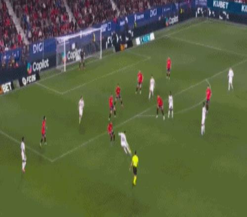 第90分钟,塞瓦略斯失误被断,劳尔-莫罗禁区前沿送出妙传,劳尔-加西亚潇洒过人,小角度冷静兜射破门,VAR核实不越位,奥萨苏纳再度领先,2-1!