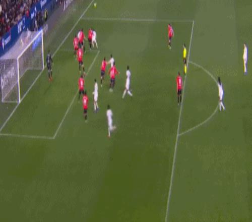 伤停补时第3分钟,居莱尔角球传中,楚阿梅尼凌空扫射,埃雷拉飞身将球托出横梁。